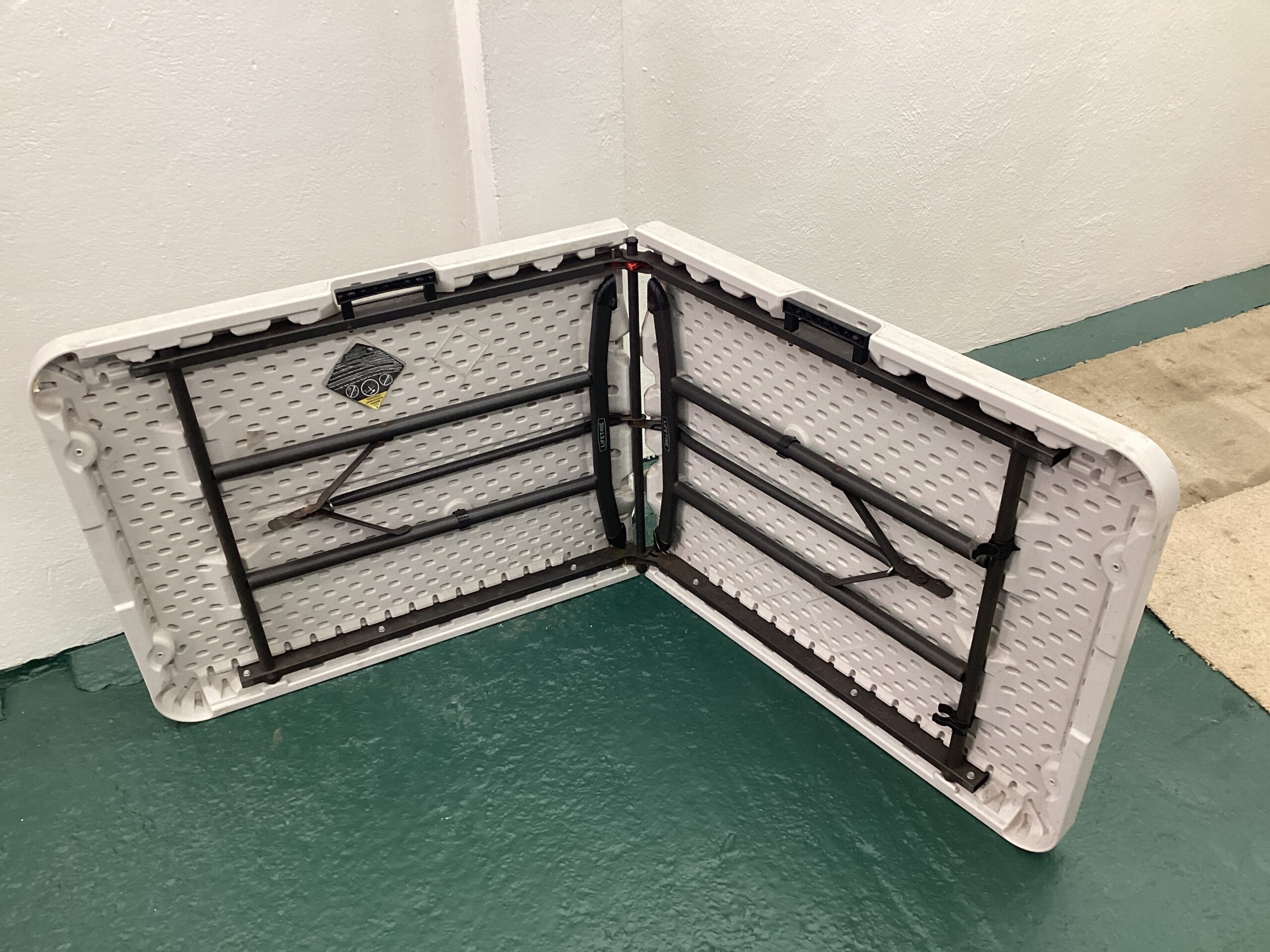 Folding table for booking desk.
